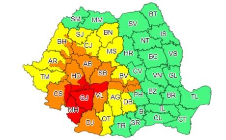 Pentru zona de sud-vest a țării a fost emis un cod roșu de precipitații abundente.