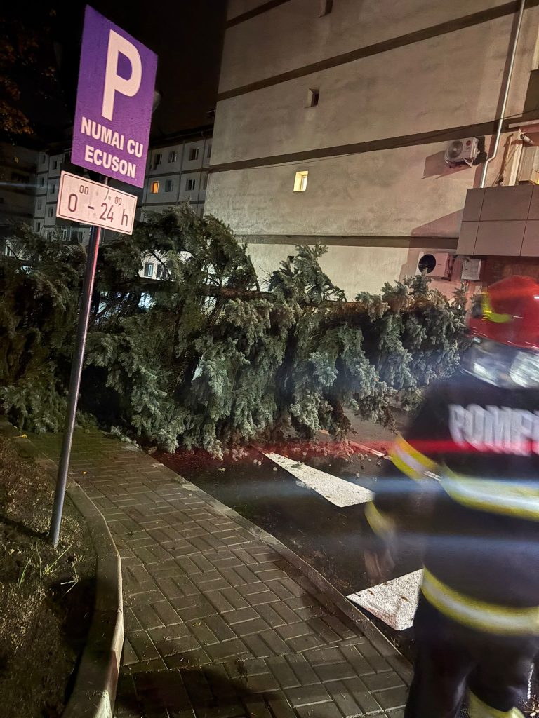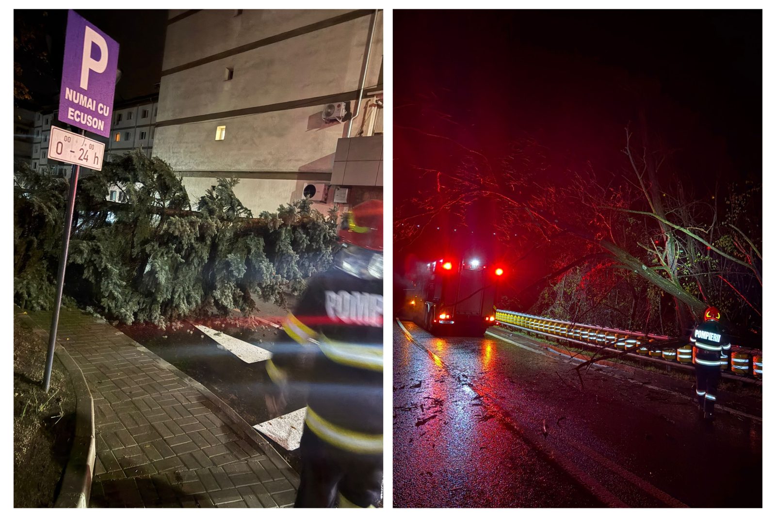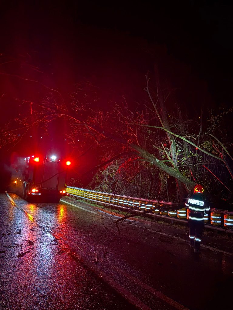 În cursul nopții de sâmbătă spre duminică, pompierii militari din cadrul ISU Vâlcea au intervenit pentru degajarea a doi copaci căzuți pe partea carosabilă în două zone ale județului.