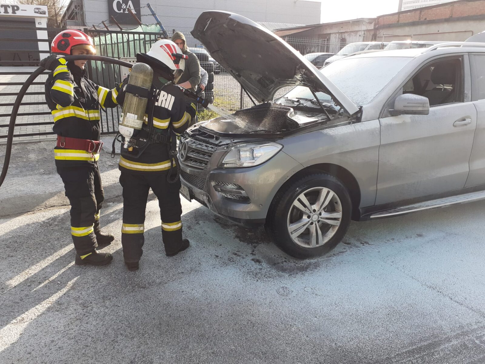 Incendiul, care se manifesta la compartimentul motor al autototurismului, a fost localizat în scurt timp de la sosirea pompierilor militari.