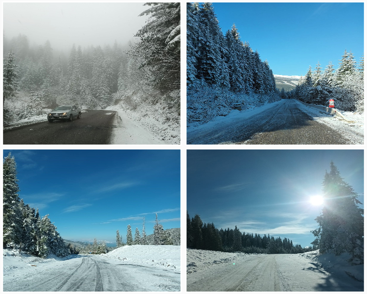 În ciuda acestui strat subțire, drumarii au intervenit pentru a asigura siguranța circulației, având în vedere imprevizibilitatea condițiilor meteorologice din zona montană.