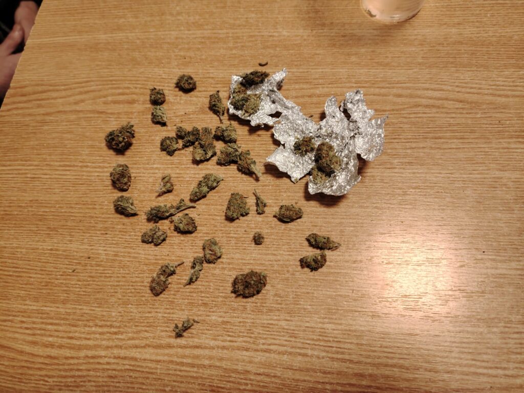 În urma verificărilor, asupra unui bărbat de 34 de ani, ascunse în căptușeala gecii, au fost găsite resturi vegetale brun-verzui cu un miros puternic, suspectate a fi substanțe interzise. Mai mult, în autoturismul acestora au fost descoperite un nunchaku metalic și alte echipamente folosite în lupte de stradă.
