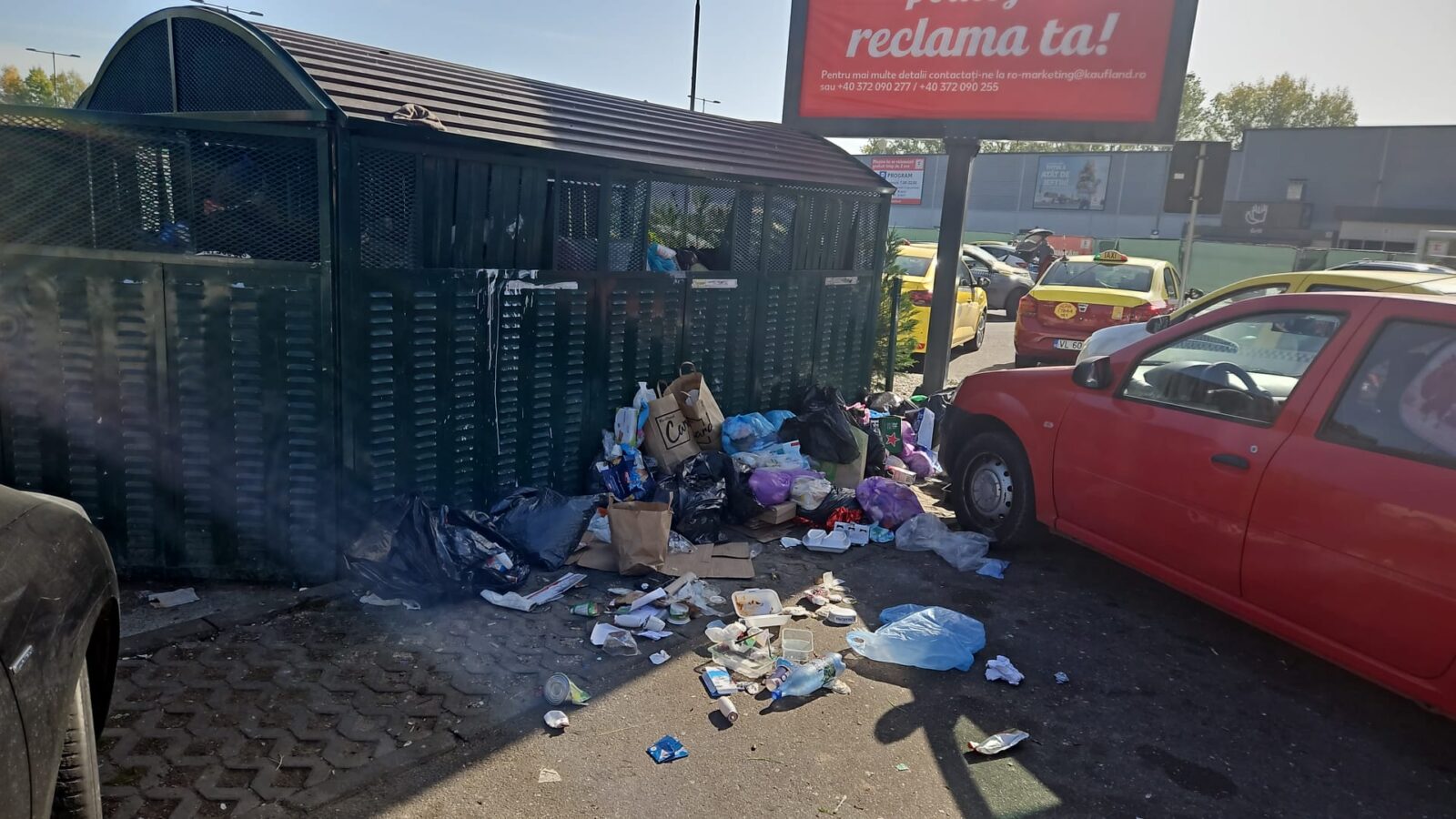 În Râmnicu Vâlcea, în zona de lângă supermarketul Kaufland, a apărut un focar de infecție cauzat de acumularea masivă de deșeuri. Pubelele sunt pline și depășesc capacitatea maximă, iar gunoiul a început să se reverse.