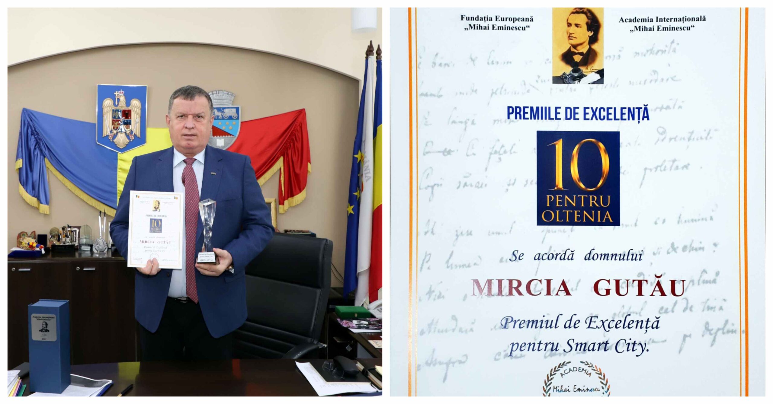 Prezent luni, 20 decembrie, la Craiova, la Gala ”10 pentru Oltenia”, primarul Mircia Gutău a primit Premiul de Excelenţă pentru Smart City pentru progresele realizate în acest sector la Râmnicu Vâlcea. Au fost apreciate, totodată, unele investiţii de anvergură – artera de legătură între bulevardele Tineretului şi Nicolae Bălcescu, rampele la pasajul Tudor Vladimirescu şi achiziţionarea celor şapte autobuze cu combustibili alternativi sau modernizarea Arenelor ”Traian”, dar şi extinderea spaţiilor verzi sau reducerea poluării. În cadrul festivităţii organizate de Fundaţia Europeană ”Mihai Eminescu” şi de Academia Internaţională ”Mihai Eminescu” au fost premiate personalităţi din zona Olteniei care au înregistrat realizări de amploare în ultima perioadă în diverse domenii de activitate – cultură, medicină, afaceri etc.
