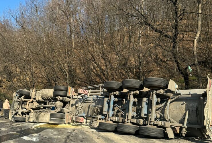 FOTO: Cisternă RĂSTURNATĂ pe șosea, la Golești! Trafic BLOCAT!