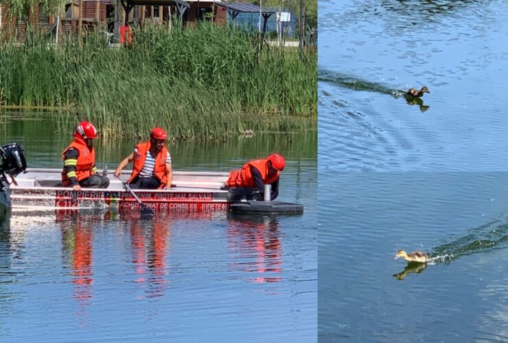 Pompierii vâlceni, salvatorii bobocilor de rață, în Parcul 3 Lacuri Nord