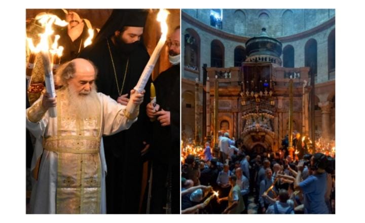 FOTO/ VIDEO: MINUNE. Lumina Sfântă a fost împărțită în Biserica Sfântului Mormânt din Ierusalim