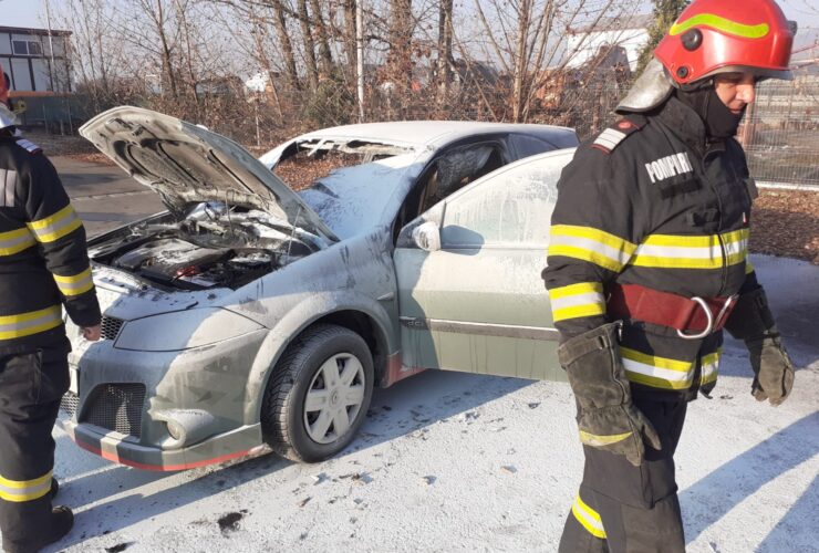 FOTO: Mașină în flăcări, pe Bulevardul Tineretului, Râmnicu Vâlcea!