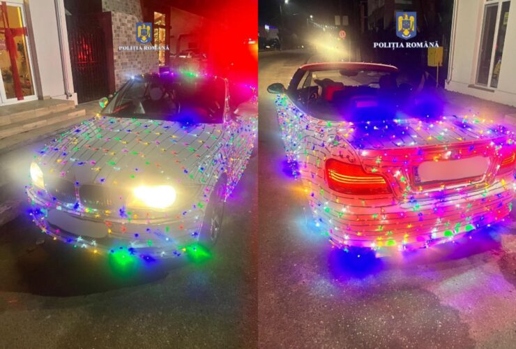 FOTO: Amendă și certificat reținut pentru o mașină împodobită, la Bălcești