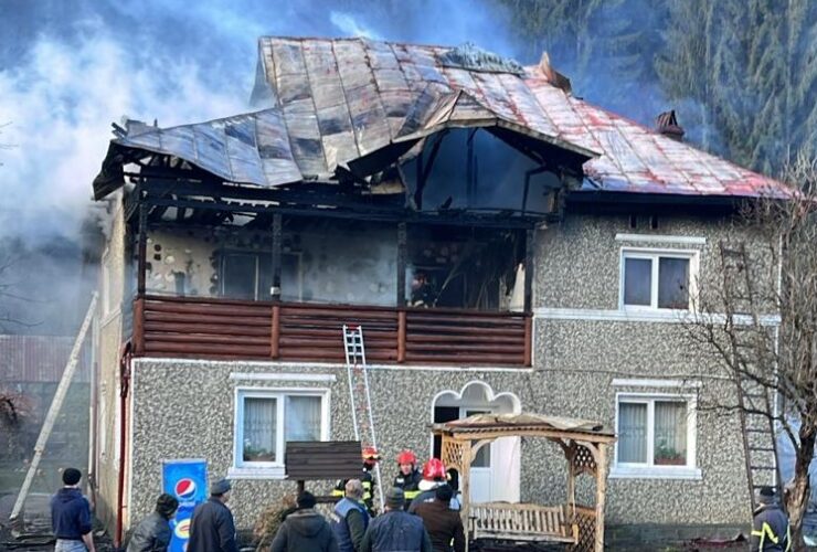 FOTO: Casă din Voineasa cuprinsă de flăcări