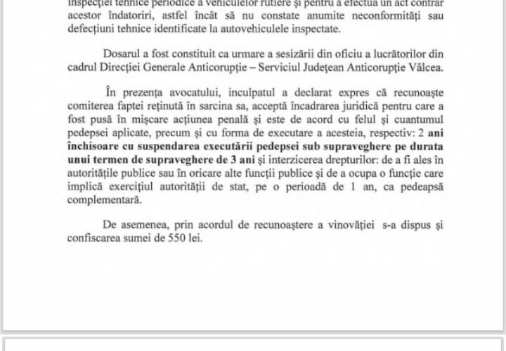 Dosar penal pentru un inspector ITP din Vâlcea! A luat mită la inspecțiile tehnice