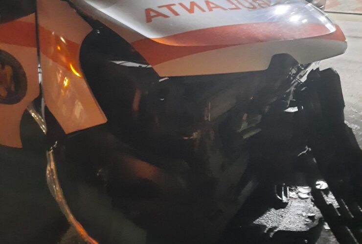 FOTO: AMBULANȚĂ implicată în accident la Mihăești! Un tânăr a ajuns la spital!