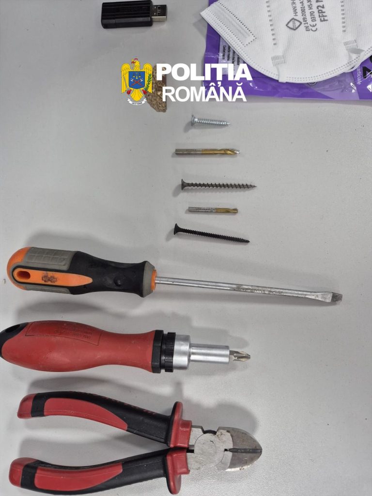 Datorită intervenției rapide a polițiștilor de investigații criminale, suspectul a fost identificat rapid în oraș, semnalmentele sale corespunzând cu cele ale autorului surprins în timpul comiterii faptei. În urma percheziției corporale și a bagajelor, oamenii legii au descoperit asupra bucureșteanului obiecte care ar fi fost folosite pentru forțarea cutiilor de valori.
