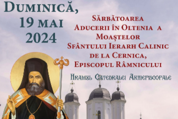 Arhiepiscopia Râmnicului cinstește în mod deosebit Ocrotitorul Eparhiei și ctitorul Catedralei Arhiepiscopale din municipiul Râmnicu Vâlcea, în perioada 16-19 mai 2024, la Sărbătoarea Aducerea în Oltenia a moaștelor Sfântului Ierarh Calinic de la Cernica.