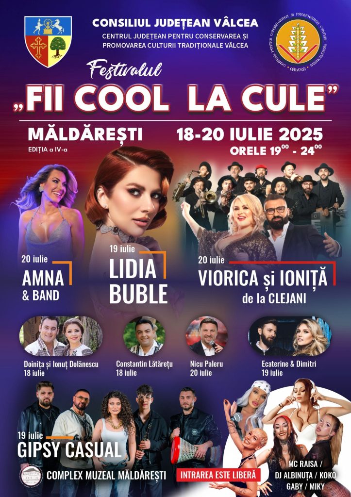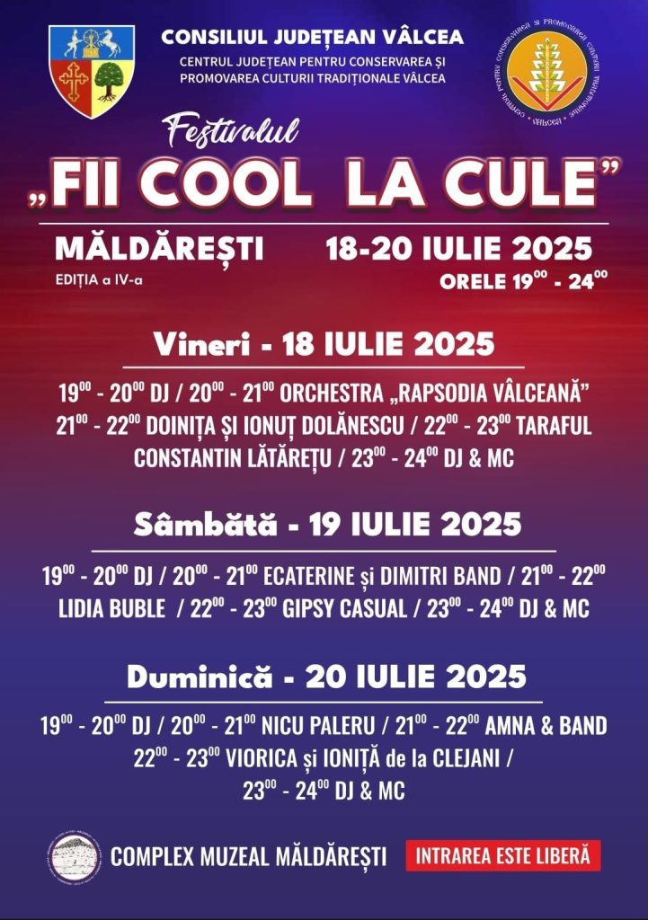 Între 18-20 iulie, Complexul Muzeal Măldărești va fi gazda celui mai vibrant eveniment muzical al sezonului. Festivalul „Fii Cool la Cule”, la cea de-a IV-a ediție, promite trei zile pline de distracție, melodii și atmosferă autentică, în inima istoriei, lângă Culele Duca și Greceanu.