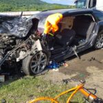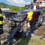 Victima a fost extrasă din autoturism și predată echipajului SAJ. Aceasta este conștientă, prezintă multiple fracturi la nivelul membrelor inferioare. Copil este conștient, preluat și evaluat de către echipaj medical cu medic.
