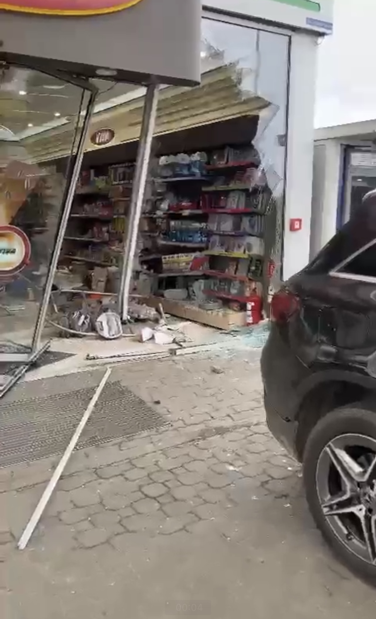 Un șofer din Vâlcea a intrat cu mașina într-o benzinărie din Arad, iar peretele de sticlă a fost distrus complet.