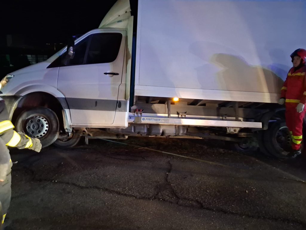 Pompierii militari vâlceni au intervenit, în urmă cu puțin timp, pentru punerea în siguranță a unei autoutilitare aflate în echilibru precar, pe raza municipiului Râmnicu Vâlcea.