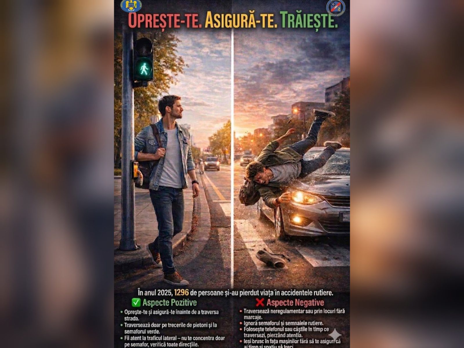 Pe parcursul acestei săptămâni, polițiștii rutieri, alături de cei de ordine publică, vor intensifica prezența în trafic, vor monitoriza zonele cu risc ridicat de accidente și vor acționa pentru prevenirea și sancționarea abaterilor comise de pietoni. Totodată, oamenii legii vor desfășura activități de informare și educare rutieră.