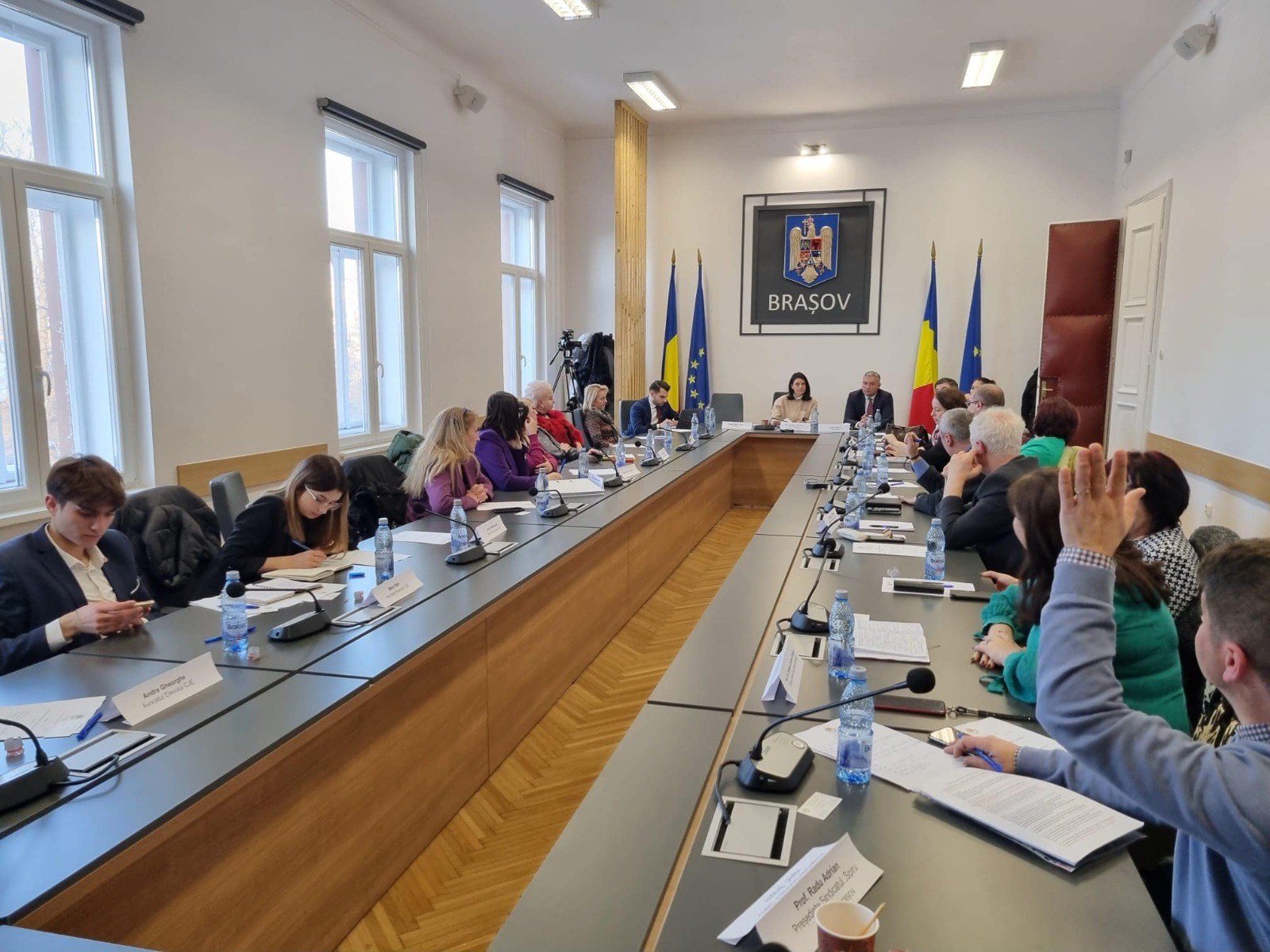 La dezbatere au participat domnul Mihai-Cătălin Văsii, Prefectul Brașovului, domnul Lucian Pătrașcu, Subprefectul Brașovului, reprezentanții Consiliului Județean, reprezentanți ai Inspectoratului Școlar din Brașov, Președintele Sindicatului „Spiru Haret”, Președintele Sindicatului „Coresi”, Președintele Federației Sindicatelor din Transporturi, Vicepreședintele Federației Naționale a Părinților, reprezentanții Consiliului Județean al Elevilor, Directori de școli generale, de colegii și de licee.