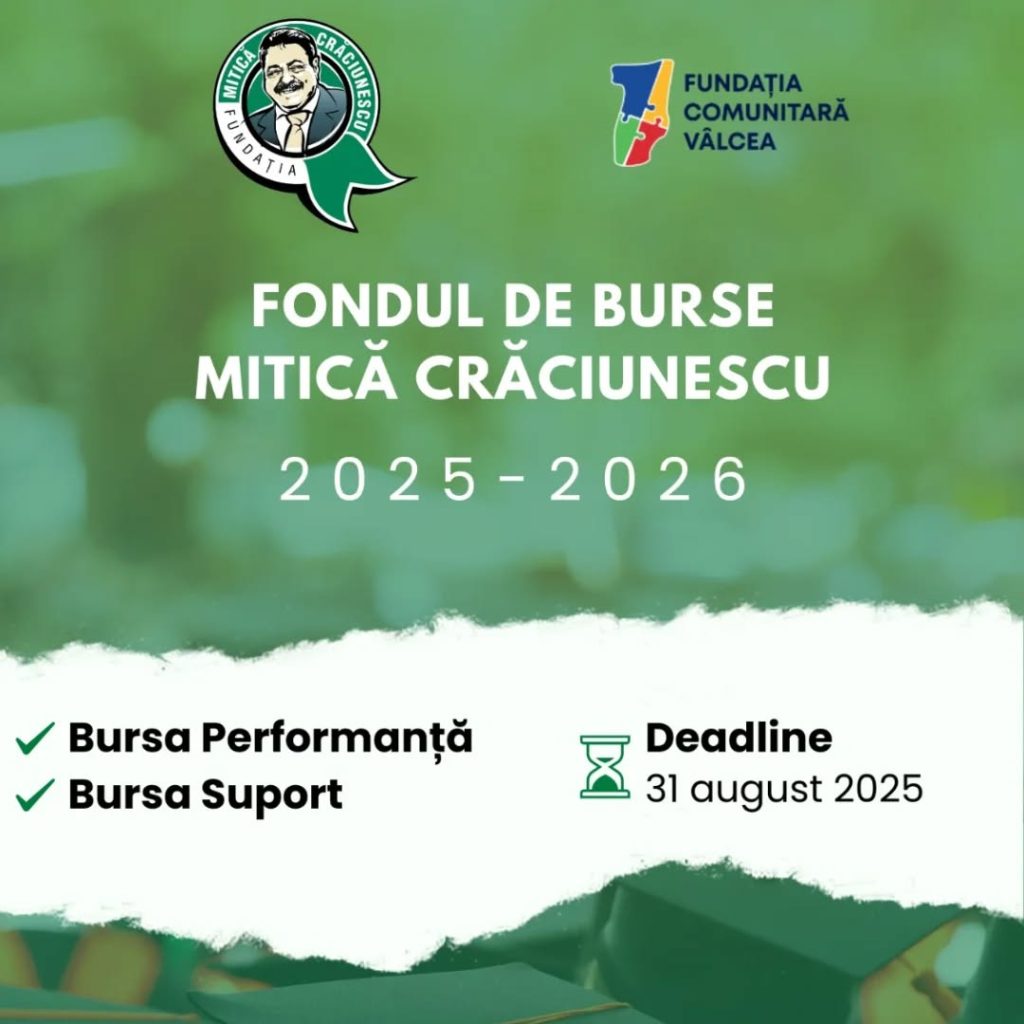 Elevii de liceu din județul Vâlcea mai au timp doar câteva zile pentru a se înscrie la Fondul de Burse „Mitică Crăciunescu” pentru anul școlar 2025–2026. Termenul-limită pentru depunerea aplicațiilor este 31 august.