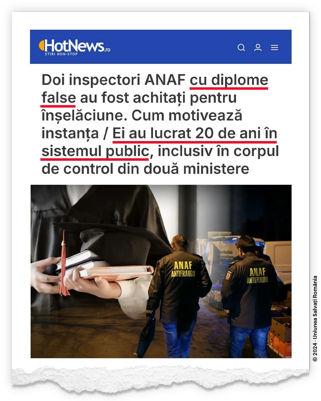 „Vă dați seama câte firme au fost ‘controlate’ de acești impostori în două decenii, în numele ANAF și al Gărzii Financiare? De asta tot spunem că România are nevoie de reforme reale și de curățenie în instituții!”, au transmis reprezentanții USR Vâlcea.