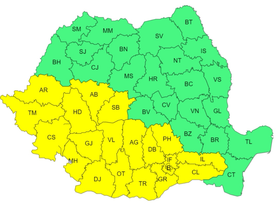 Crișanei și sud-vestul Transilvaniei, se vor înregistra temperaturi ridicate pentru această dată, maximele se vor situa în general între 32 și 35 de grade și local va fi caniculă.