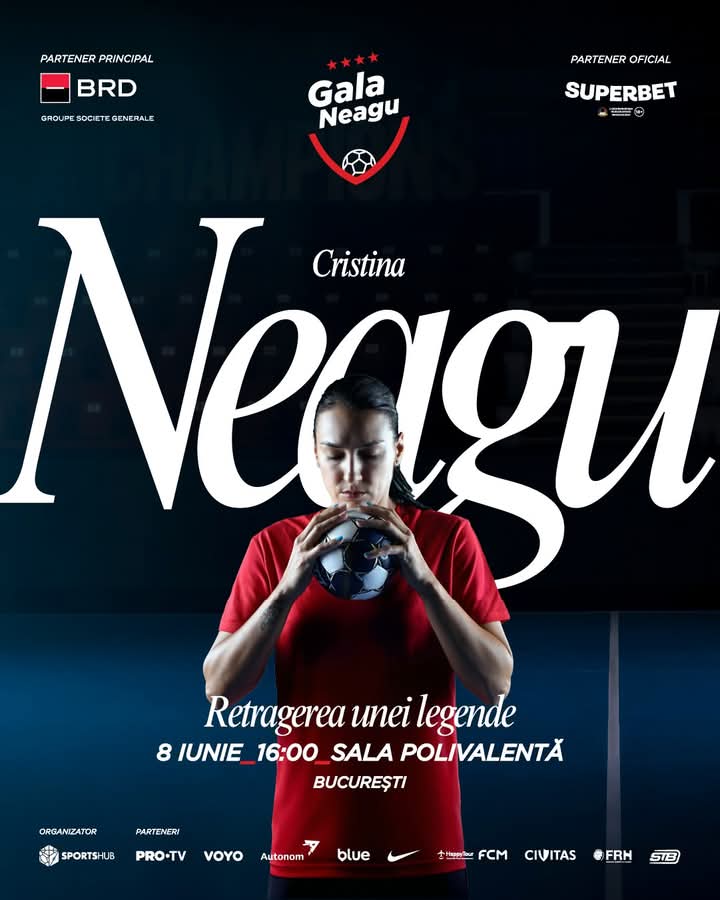 Anunțul retragerii din activitate a Cristinei Neagu marchează sfârșitul unei ere pentru handbalul românesc. Pe 8 iunie, la Sala Polivalentă din București, va avea loc „Gala Neagu” – un eveniment unic, gândit ca o sărbătoare a unei cariere legendare. Pe teren și în tribune se vor reuni oameni care i-au fost aproape în momente-cheie: colege de echipă, antrenori, prieteni și suporteri. Evenimentul va include nu doar un meci special cu trei reprize, ci și momente emoționante și intervenții-surpriză.