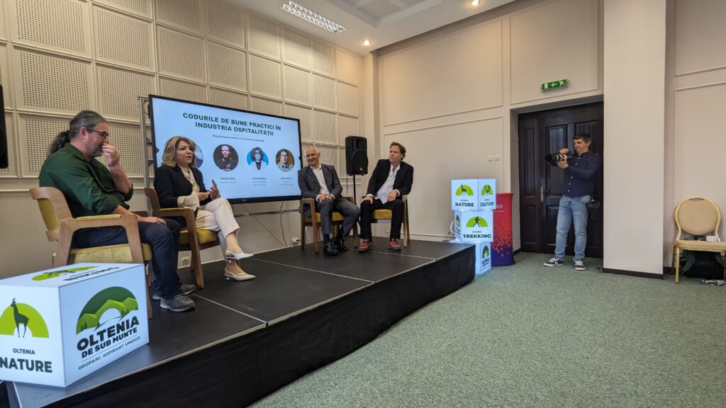 Unul dintre cele mai așteptate momente ale zilei a fost intervenția lui Charlie Ottley, realizatorul documentarelor „Flavours of Romania”, care a vorbit despre branding-ul turistic și modul în care Oltenia poate fi promovată eficient pe plan internațional. Panelul despre bune practici în industria ospitalității, moderat de Călin Ile, i-a adus la aceeași masă pe Violeta Nițescu, Florin Stoican și Charlie Ottley, care au discutat despre trendurile în sustenabilitate și standardele hoteliere moderne.