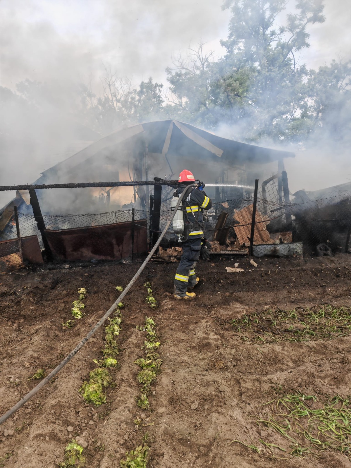 Apelul la 112 a fost înregistrat cu puțin timp în urmă, iar la fața locului au fost trimise de urgență două autospeciale de stingere cu apă și spumă. La sosirea echipajelor, flăcările se manifestau violent la trei anexe gospodărești, una dintre acestea conținând și un recipient de 200 de litri cu motorină, ceea ce a crescut riscul de explozie.